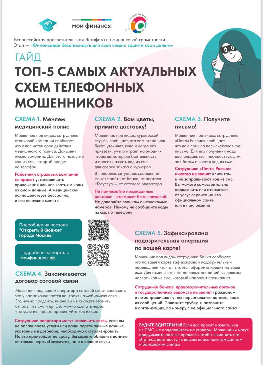 Вам позвонили на мобильный с незнакомого номера. Солидный мужской голос на фоне шума офиса сообщил: «Это служба безопасности вашего банка. Мы зафиксировали, что киберпреступники пытаются получить доступ к вашему личному кабинету. Надо срочно перевести все деньги на безопасный счет, иначе их украдут!». В такой ситуации нужно немедленно положить трубку: это звонят мошенники. Аферисты постоянно придумывают новые способы выманить у людей деньги или конфиденциальные данные для доступа к счетам. Но какой бы ни была легенда, есть пять примет, по которым можно сразу же вычислить обманщиков. Подробнее – читайте в листовке и на сайте Финкульт.инфо.